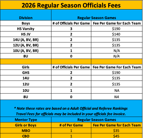 2026 REGULAR SEASON OFFICIALS FEES